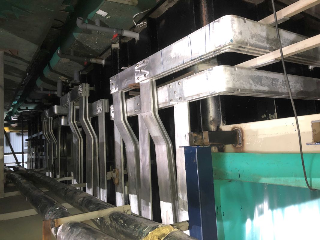 2) ถังคลอเรน:100m2/ถัง×70A/m2÷0.9 = 7777A/ถัง